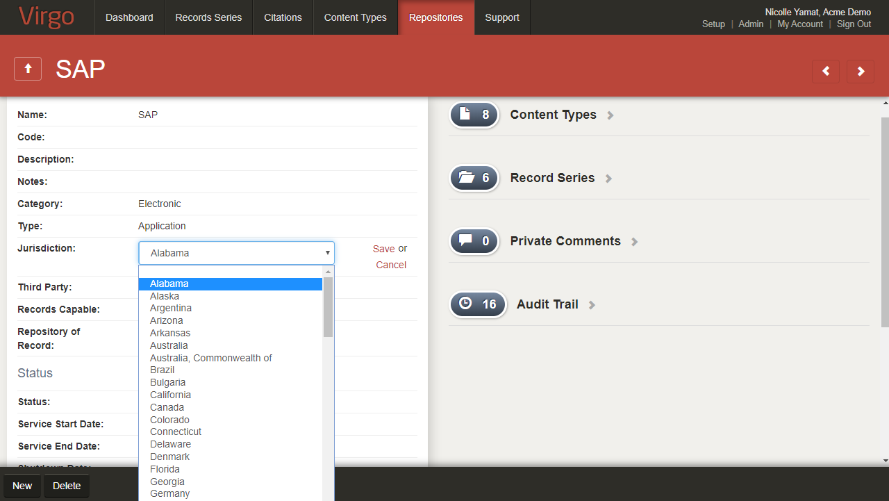 You can also find the Jurisdiction field in the repositories detail screen.