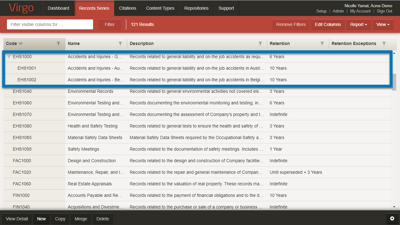 Select Yes to let you drag-and-drop record series onto one another and create a hierarchical structure. Also enables the Parent Record Series field on the record series detail screen.