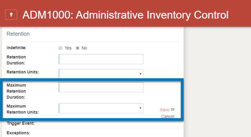 For retention, you have the option to display either a single, free-text Retention field or separate duration and units fields.