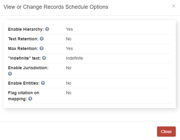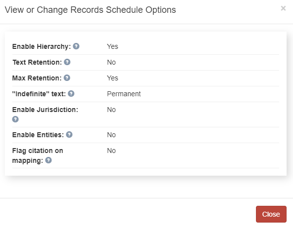 in the lower right corner of the Record Series tab. The View or Change Records Schedule Options page displays.