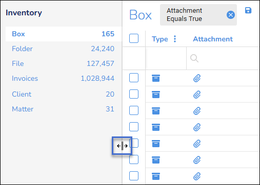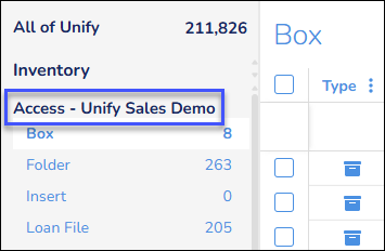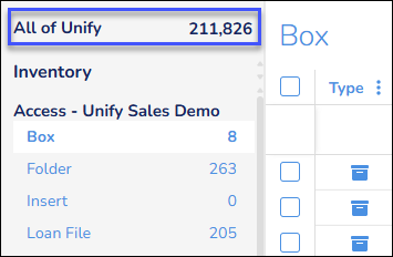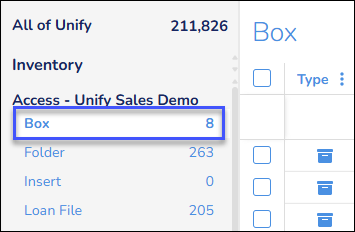 You can also click a record type, for example Box, to display those records on the Inventory page.